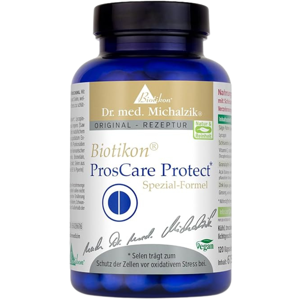 Auf dem verdienten 2. Platz findet sich das ProsCare Protect von Dr. Michalzik. Dieses Präparat überzeugt durch seine umfassende Wirkstoffkombination und die gute Verarbeitungsqualität. Es setzt auf Sägepalmenextrakt, ergänzt durch Lycopin aus Tomaten und weitere Wirkstoffe, die nachweislich die Prostatagesundheit unterstützen. Wir haben ProsCare Protect über denselben Zeitraum getestet wie Menvigo Prosta. Auch wenn es in puncto Qualität überzeugte, konnte es die Ergebnisse unseres Testsiegers nicht erreichen. Besonders die aufwändige Einnahme von vier Kapseln am Tag und der höhere Preis waren hier entscheidende Faktoren. Dennoch bleibt es eine gute Wahl für Männer, die auf ein Produkt ohne Zusatzstoffe setzen möchten.