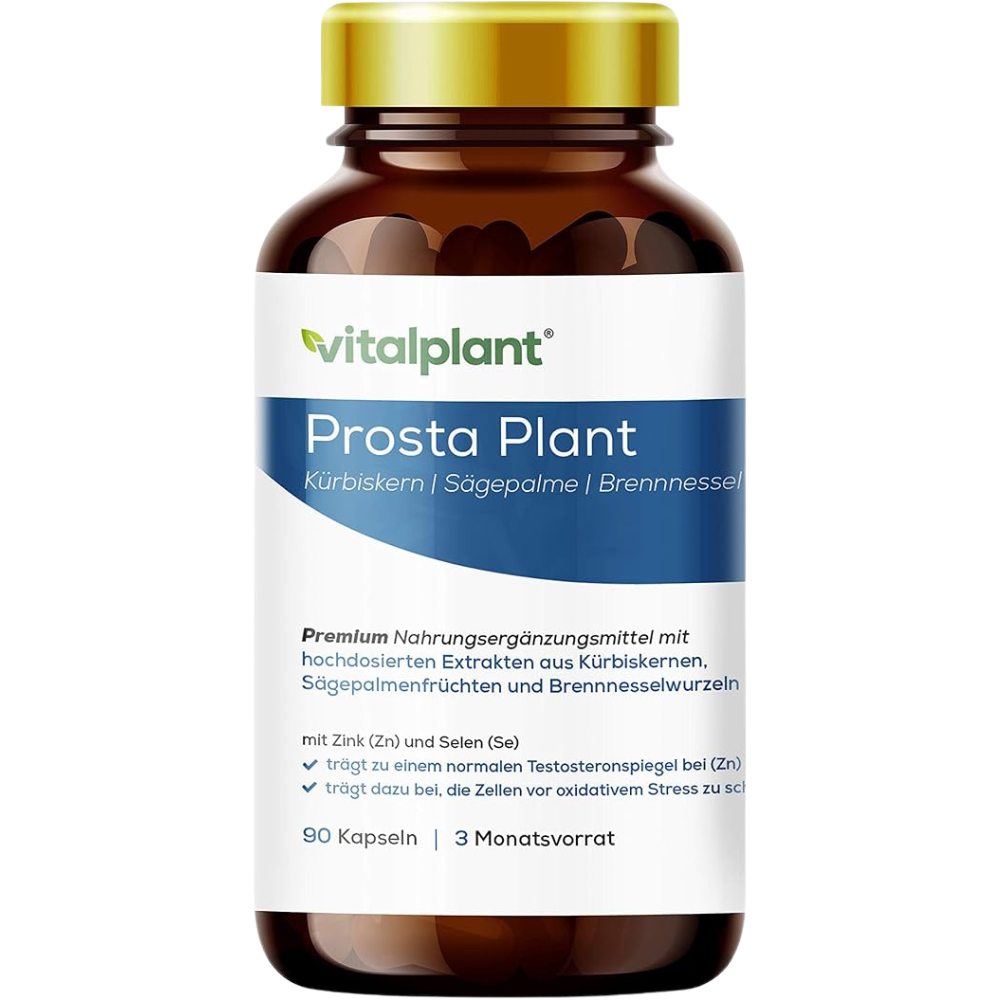 Das Präparat von Vitalplant landet auf dem vierten Platz unseres Tests. Es wirbt mit einer „stärksten Formel auf dem Markt“ und enthält hochdosierte Extrakte aus Kürbiskernen, Sägepalmenfrüchten und Brennnesselwurzeln. Hervorzuheben ist die Standardisierung auf Fettsäuren und die Verwendung von Brennnesselwurzel- statt Blattextrakt. Trotz der guten Dosierung der Hauptinhaltsstoffe fehlen jedoch wichtige ergänzende Mikronährstoffe, was die Gesamtwirksamkeit des Produkts leider deutlich einschränkt.